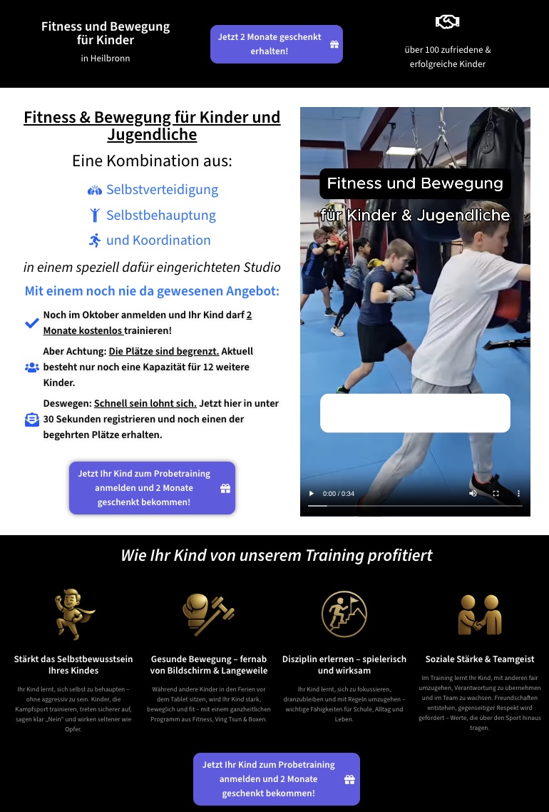 - Separate Kampagnen für Kinder- und Erwachsenentraining